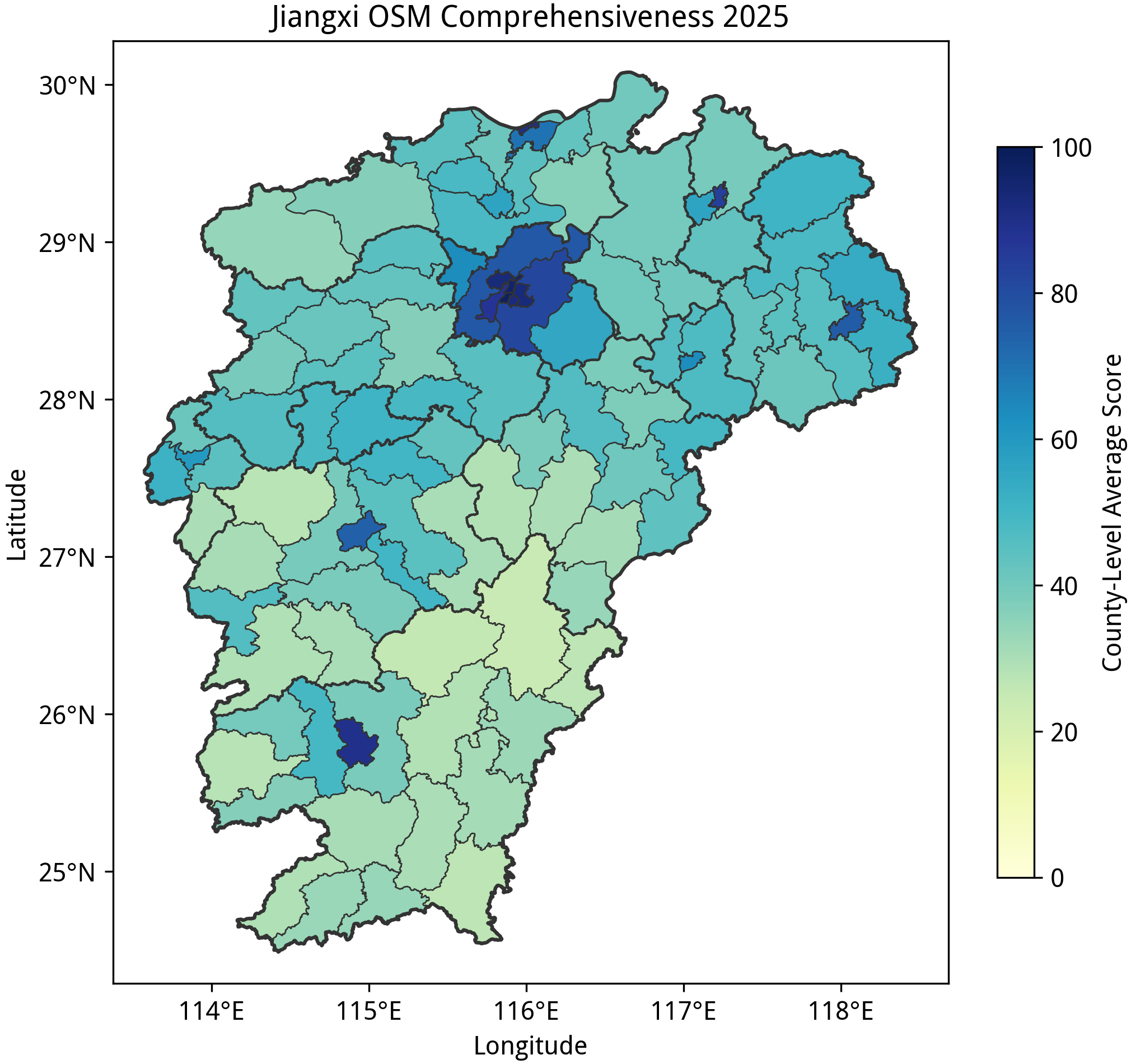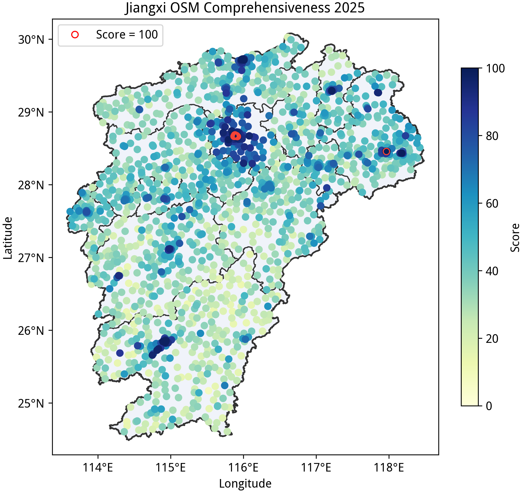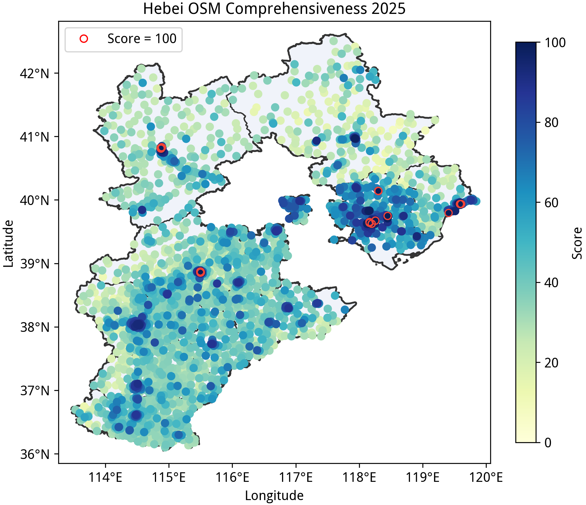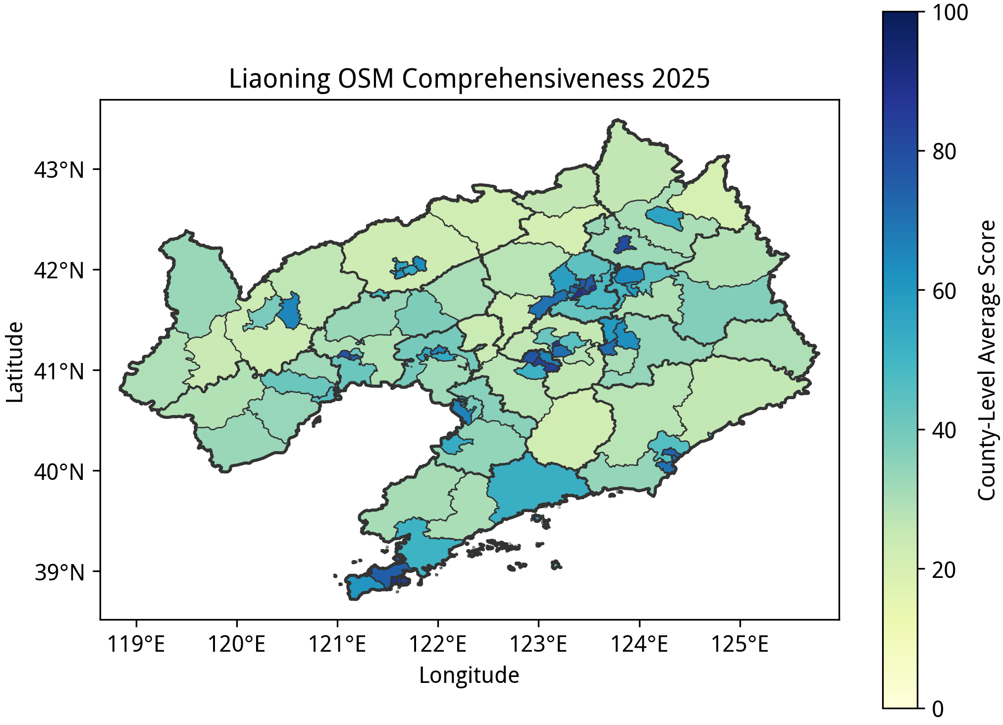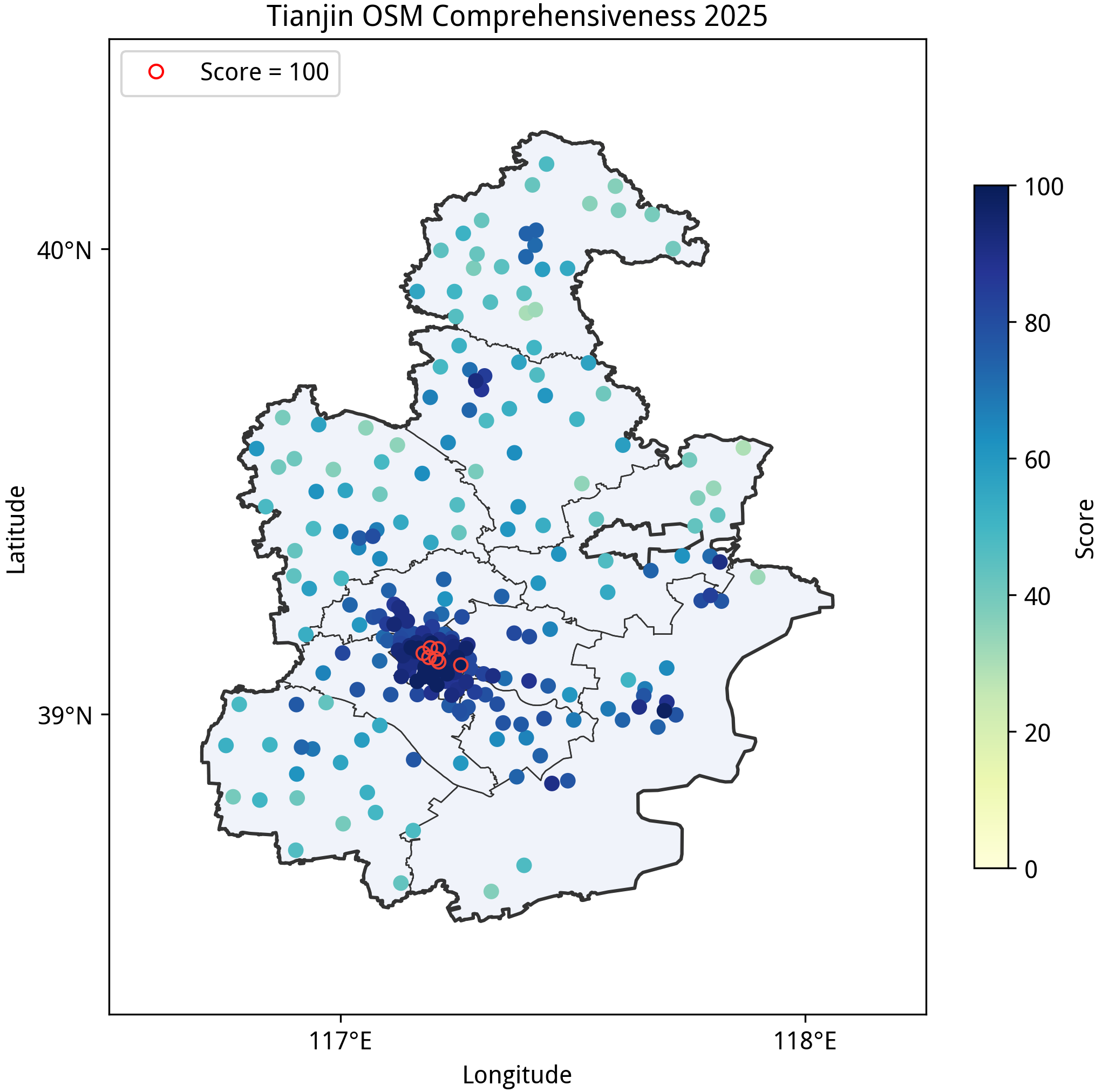本文所述的“完备度”分数是在特定规则下得到的定量指标,不应该作为该区域绘图质量的认可或否定,也不应当作为唯一的绘图目标