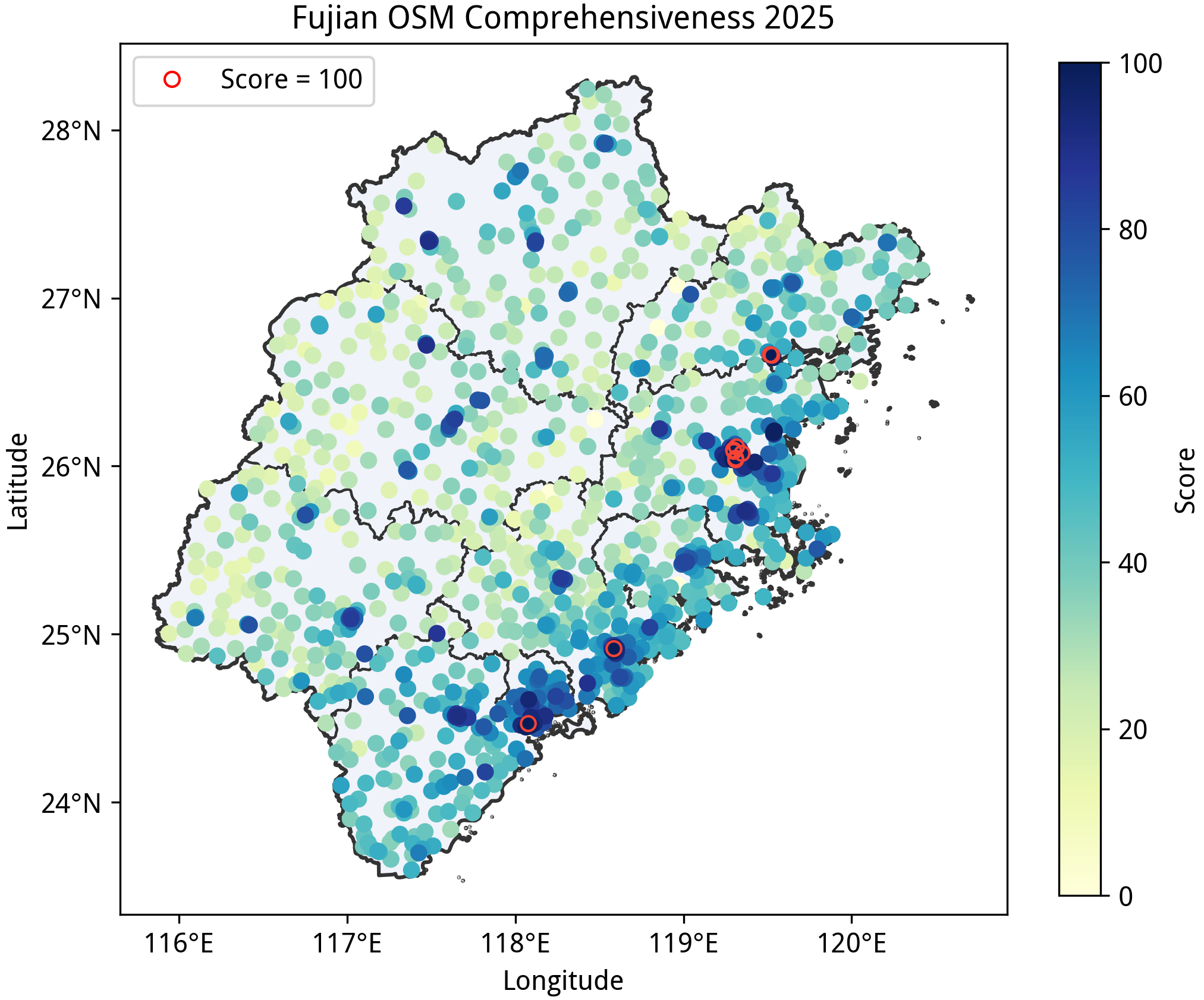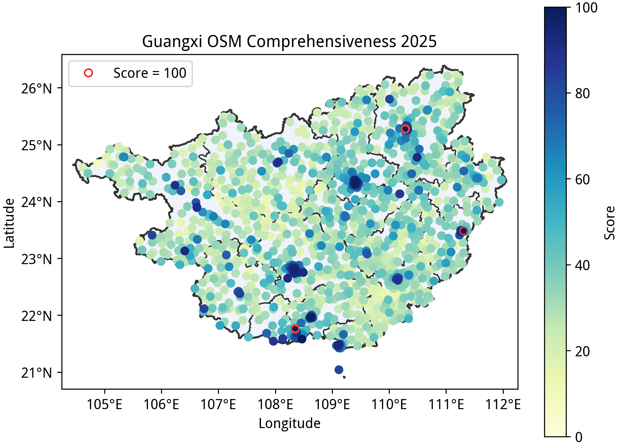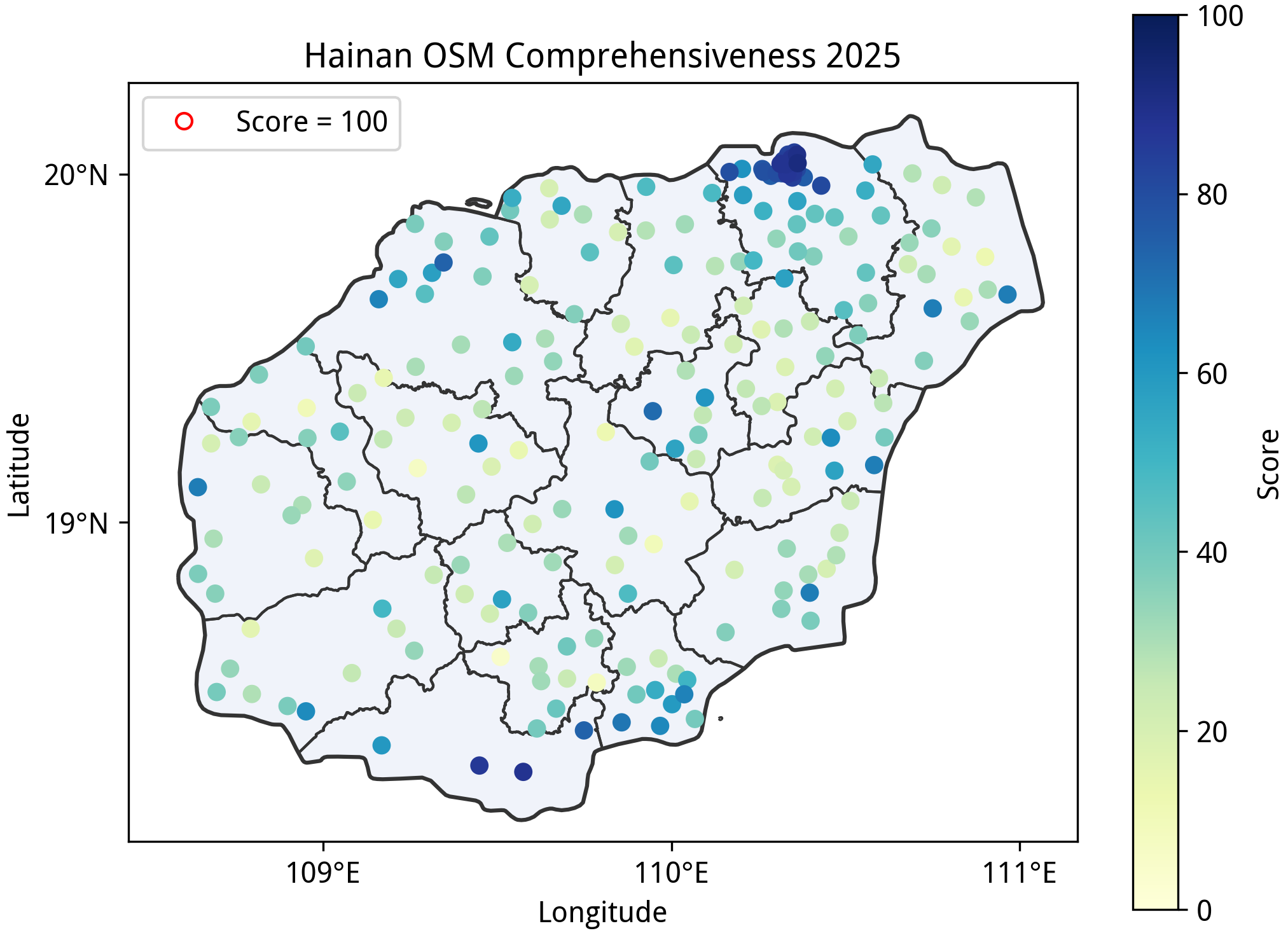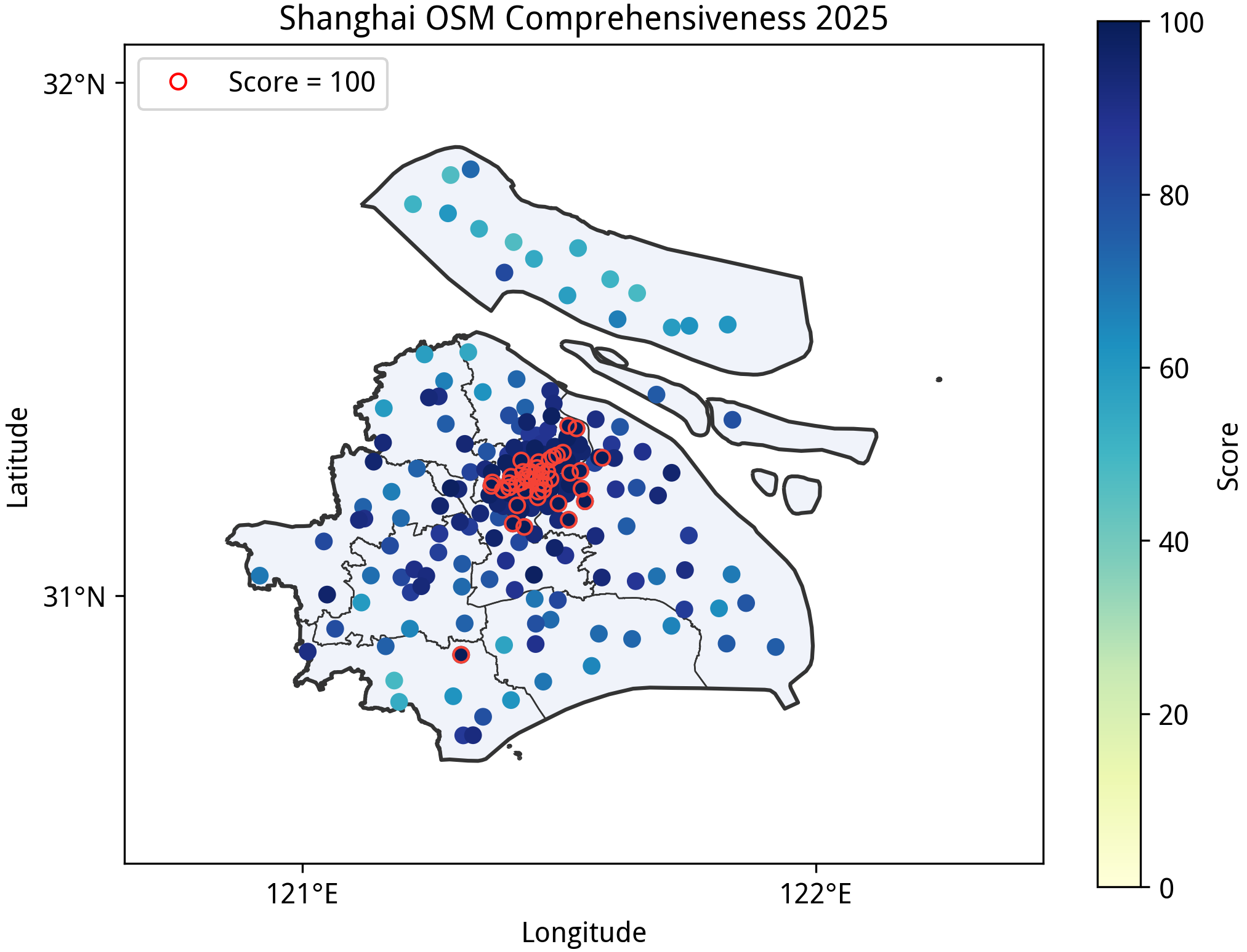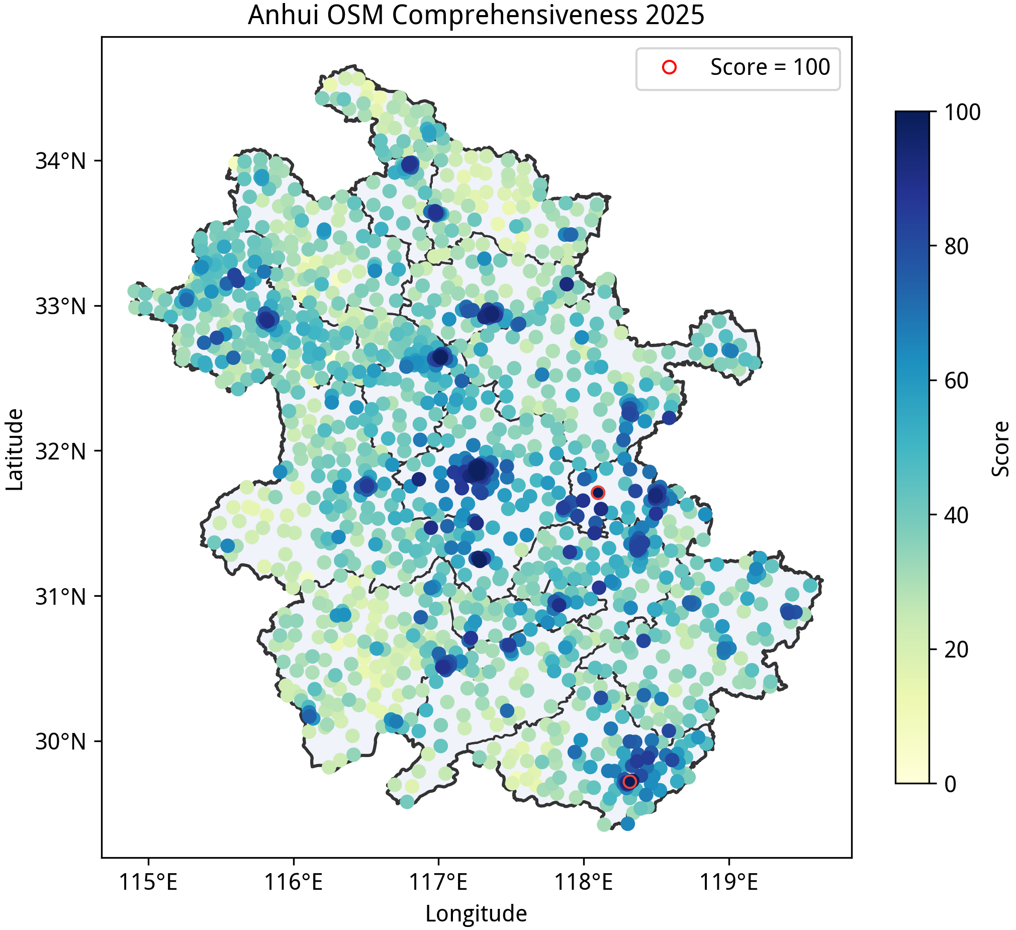 本文所述的“完备度”分数是在特定规则下得到的定量指标,不应该作为该区域绘图质量的认可或否定,也不应当作为唯一的绘图目标