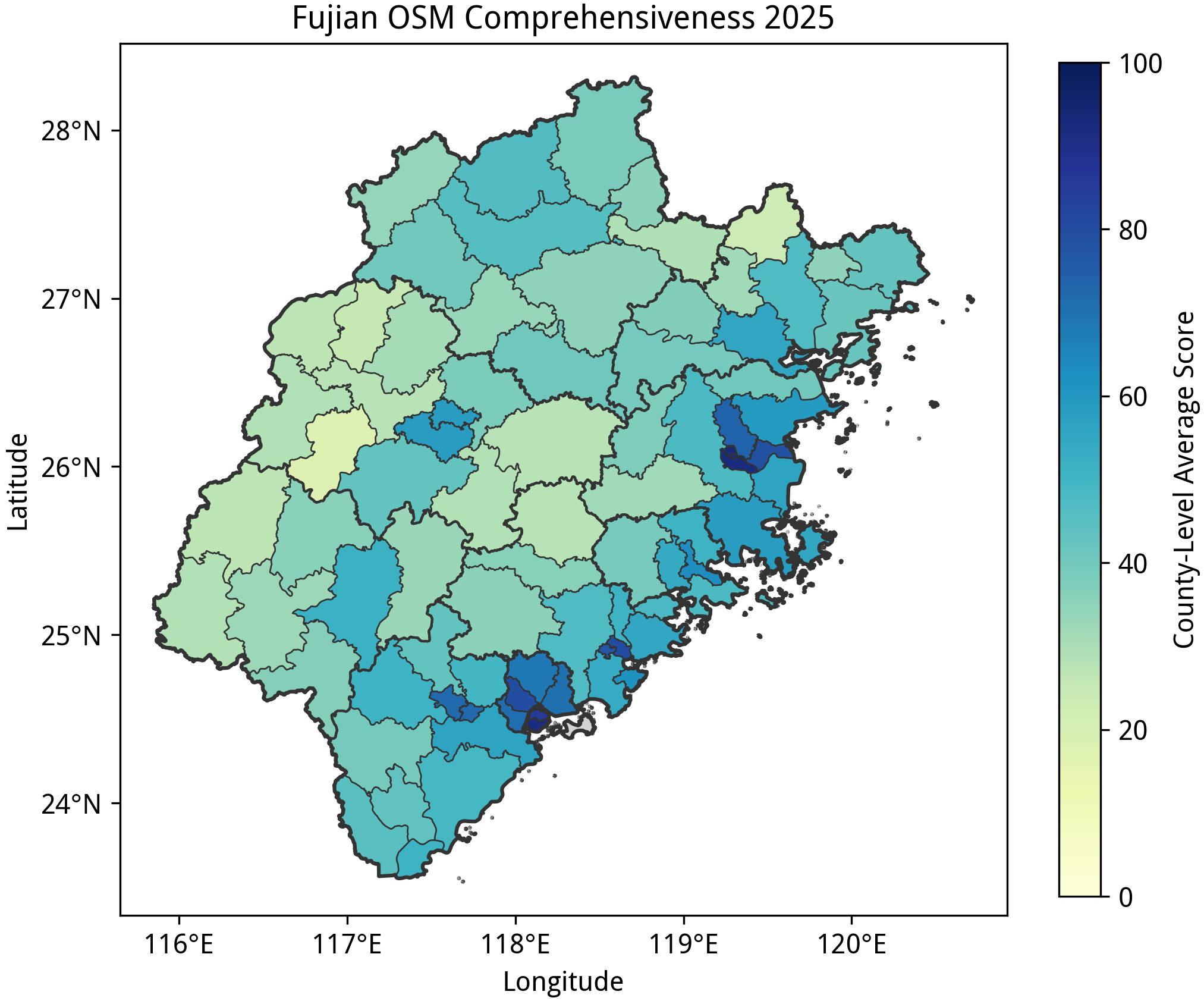 Posted by Higashimado on 25 January 2026 in Chinese (China) (中文(中国大陆)).本文是2025 年中国大陆乡镇 OSM 要素完备度分析报告(一)的续篇,展示了中国大陆内 31 个省、区、市内的乡镇 OSM 要素完备度分布情况。关于本文所述的 OSM 要素完备度及其统计规则,前篇已有介绍,本篇就不再赘述。本文吸纳前篇发表后的诸多建议所作修改,也展示在了前篇的对应部分中。所以,在阅读本篇的结果之前,请先对前篇中的说明有所了解。